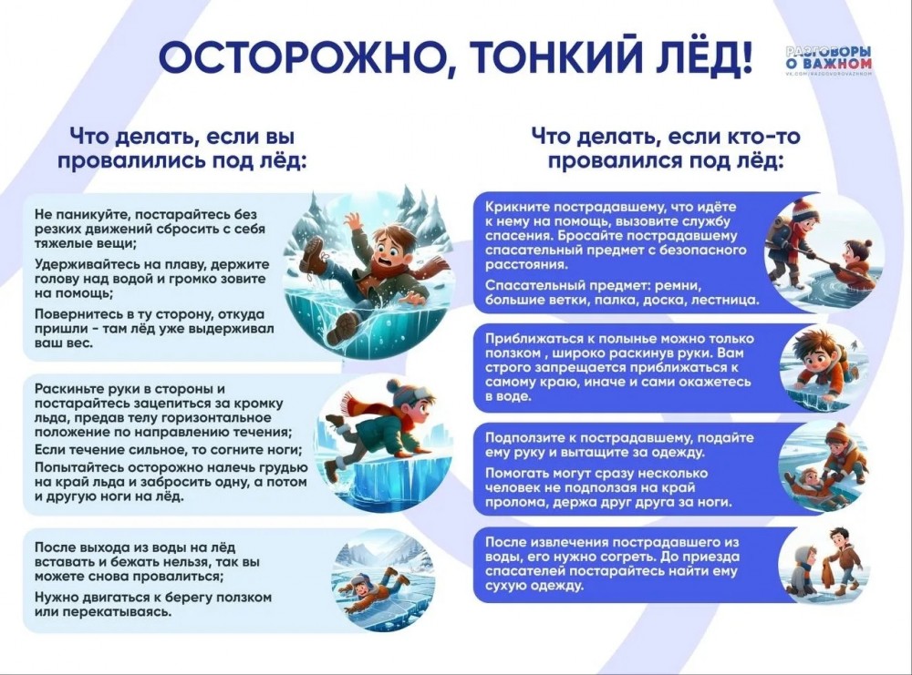 В осенне-зимний период во время понижения температуры окружающей среды до отрицательных значений, на водных объектах начинает образовываться ледяной покров. Однако каждый год многие люди пренебрегают мерами предосторожности и выходят на тонкий лёд, тем самым подвергая свою жизнь смертельной опасности.