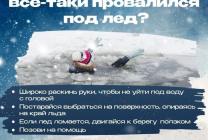 - Если лёд выдержал, перекатываясь, медленно ползти к берегу (при этом, необходимо ползти в ту сторону, откуда Вы пришли, ведь лёд здесь уже проверен на прочность).